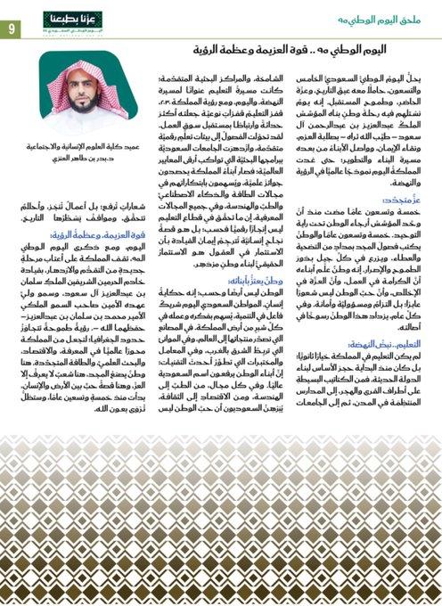 سعادة عميد كلية العلوم الإنسانية والاجتماعية في #جامعة_الحدود_الشمالية د.بدر بن طاهر العنزي: اليوم الوطني ٩٥: قوة العزيمة، وعظمة الرؤية.